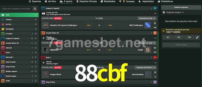 O 88cbf oferece uma grande seleção de opções de apostas em e-sports com probabilidades competitivas